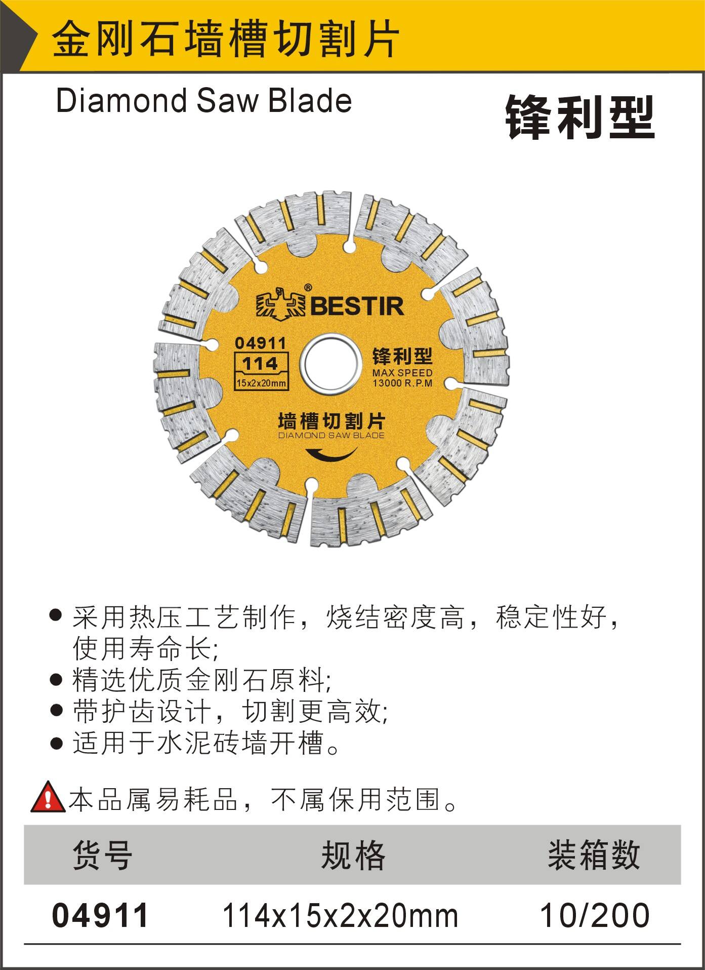 鹰之印锋利型墙槽云石片4寸-04911